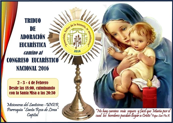 En febrero, la convocatoria será los días 2, 3 y 4, desde las 18, en el templo parroquial, ubicado en la esquina de avenida Virgen del Valle y calle Rojas, culminando a las 20.30 con la celebración de la Santa Misa.