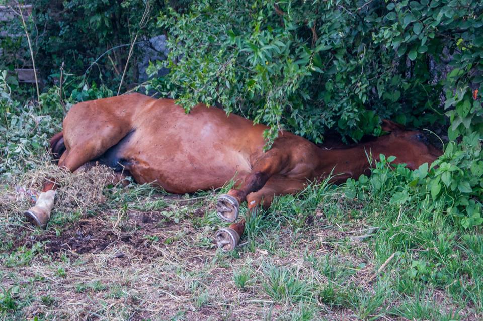 DEJARON TIRADO ESTE CABALLO AL . PARECER ESTÁ QUEBRADO LA POLICÍA FUE Y DIJERON Q NADA PUEDE HACER. .. EL TEMA ES Q EL ANIMALITO SIGUE VIVO Y ESTÁ SUFRIENDO! !! HABER LA POLICÍA. .BOMBEROS. .SI ESTE ANIMAL NO TIENE SOLUCION HAY Q SACRIFICAR NO PUEDEN DEJARLO TIRADO Y SUFRIENDO ....