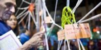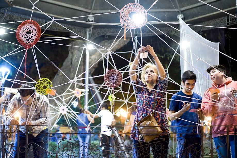 plaza escribió en papeles y colgó sobre un entramado que rodeada la glorieta,