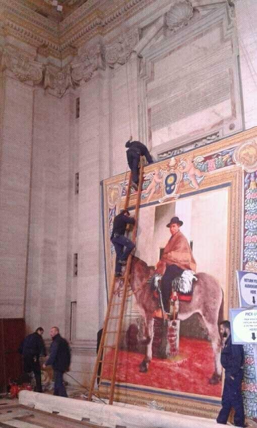 del tapiz que será colocado frente a la Basílica de San Pedro, para la