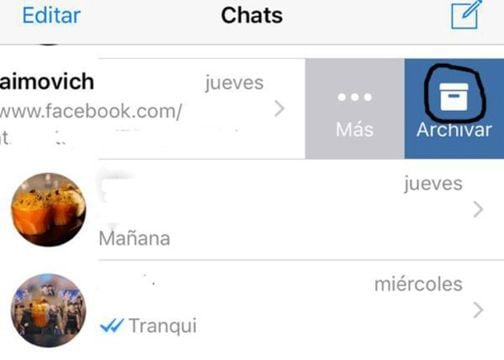 conversaciones, presionar sobre el chat que desees esconder y luego aparecerá