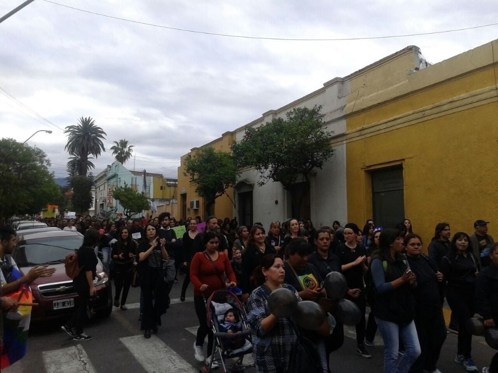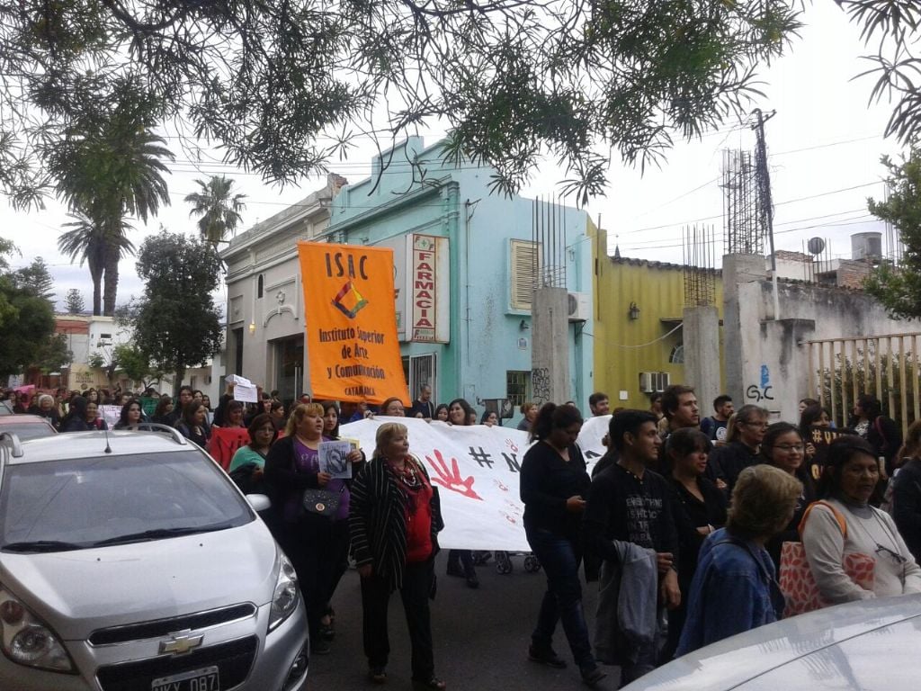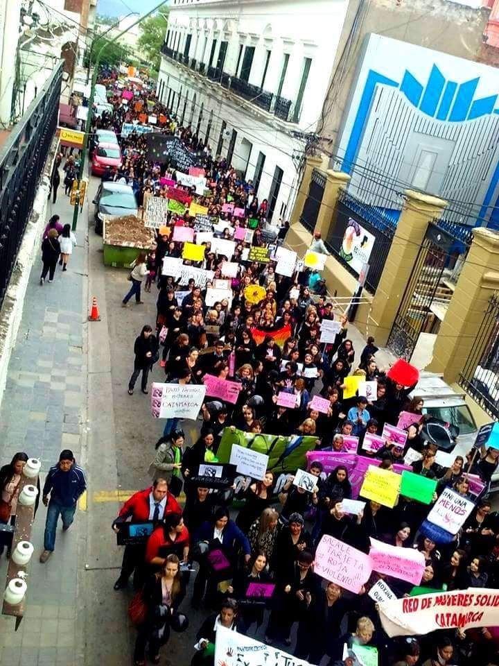 Casi tres cuadras de manifestantes, recorre el microcentro catamarqueño, para terminar su recorrido en Plaza 25 de Mayo, donde está previsto que se lleve a cabo un acto público.