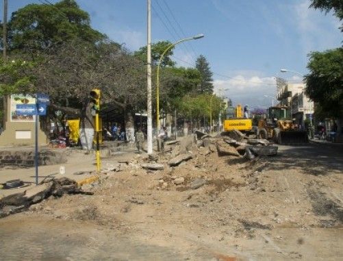 Tal y como fue anunciado días atrás, personal de Obras Públicas ya se encuentra trabajando sobre la demolición del pavimento para luego realizar la preparación de base y colocar finalmente los adoquines correspondientes.