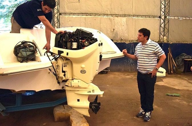 El intendente Guilllermo Ferreyra junto al director de Producción, Antonio "Nino” Natilla, supervisaron en la jornada de ayer los últimos trabajos de diagnóstico y puesta a punto de la embarcación.