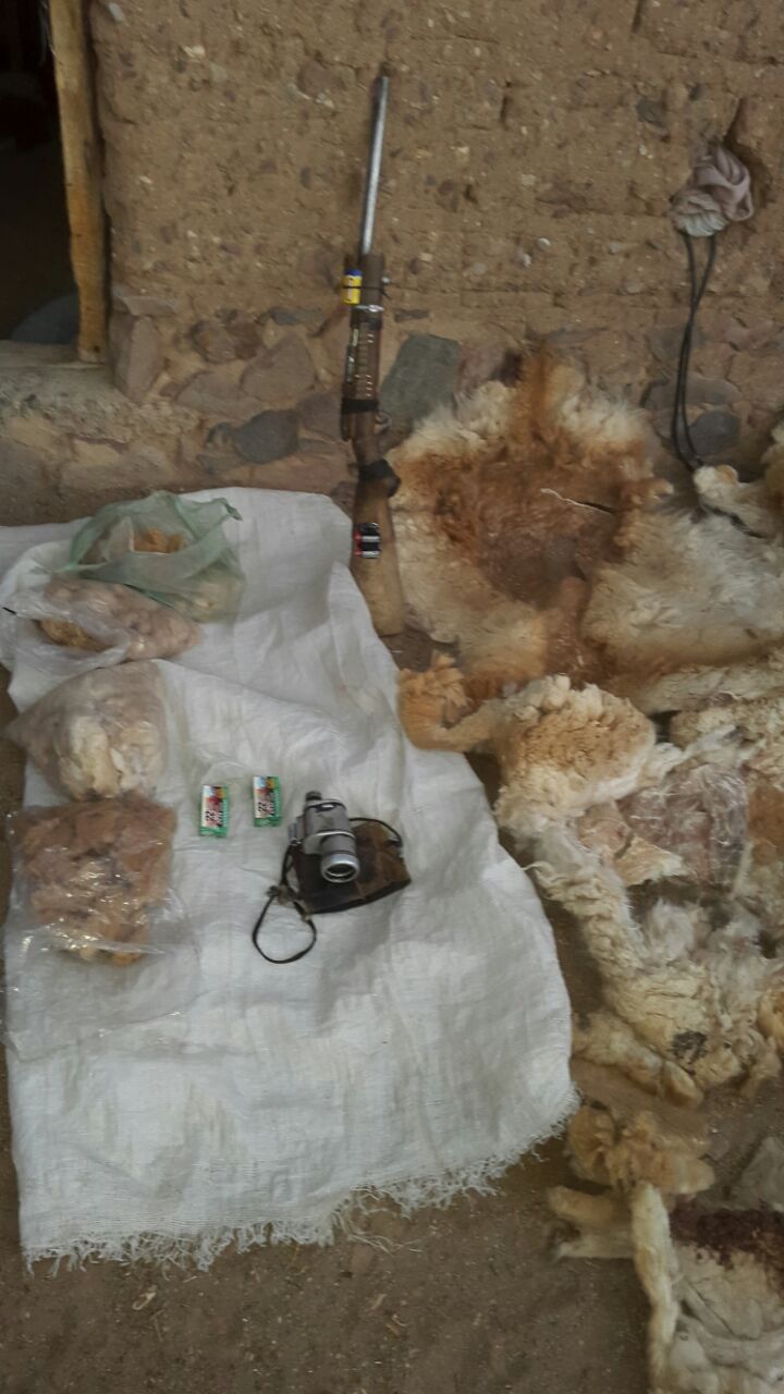 para cacerías ilegales. Además, los guardaparques hallaron diversos cueros de especies