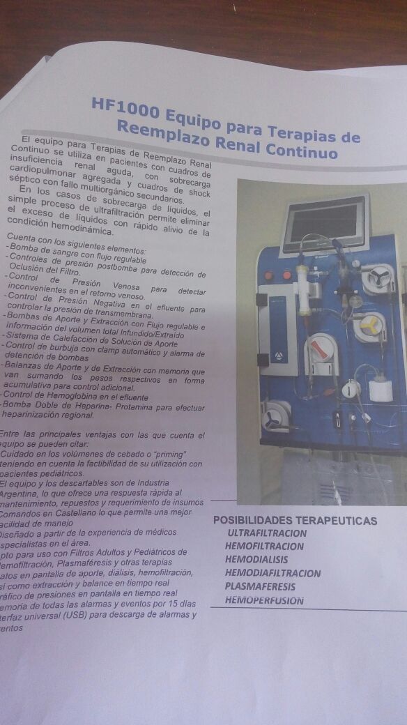 El equipo de hemofiltro más insumos cuesta $395000, habiendo