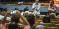 Durante la charla, en la que Sacheri se dejó