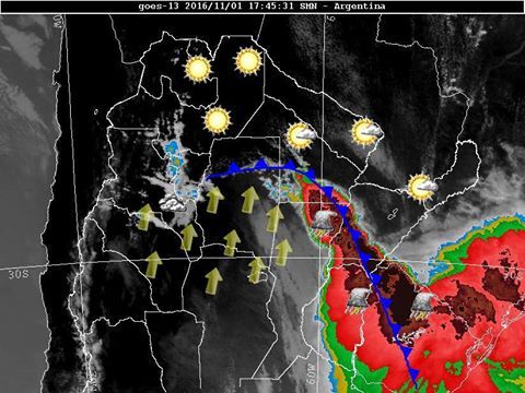 Este viento es catalogado como moderado con algunas ráfagas fuertes y se mantendrá por unas horas más afectando principalmente el centro y este de la provincia. No existen posibilidades de precipitaciones, a excepción de zonas de yungas, en los departamentos Paclín y Santa Rosa, principalmente. Esto es debido a que el contenido de humedad en el aire va bajando conforme cambia la masa de aire que trae consigo el frente frío. Este cambio de aire también hará descender la temperatura, por lo que mañana será un día bastante más fresco que los que venimos teniendo.
