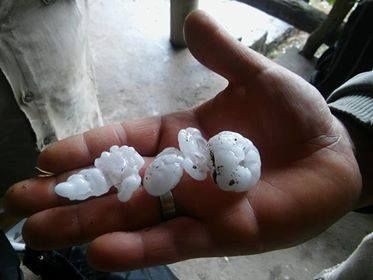 "Imágenes que nos enviaron desde distintos puntos de la provincia, mostrando lo sucedido ayer con las tormentas que se desarrollaron en algunos departamentos. La característica más destacada que tienen las tormentas que se vienen manifestando últimamente es la caída de granizo, como pueden ver en estas fotos tomadas en las localidades de La Rinconada y Colpes, en el departamento Ambato. También nos enviaron reportes de la ciudad de Recreo, donde lo más característico fue el fuerte viento producto de un frente de ráfagas que pasó por el lugar.