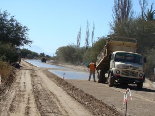 trabajando en conformación de banquinas. Entre Las Mojarras (Santa María) y