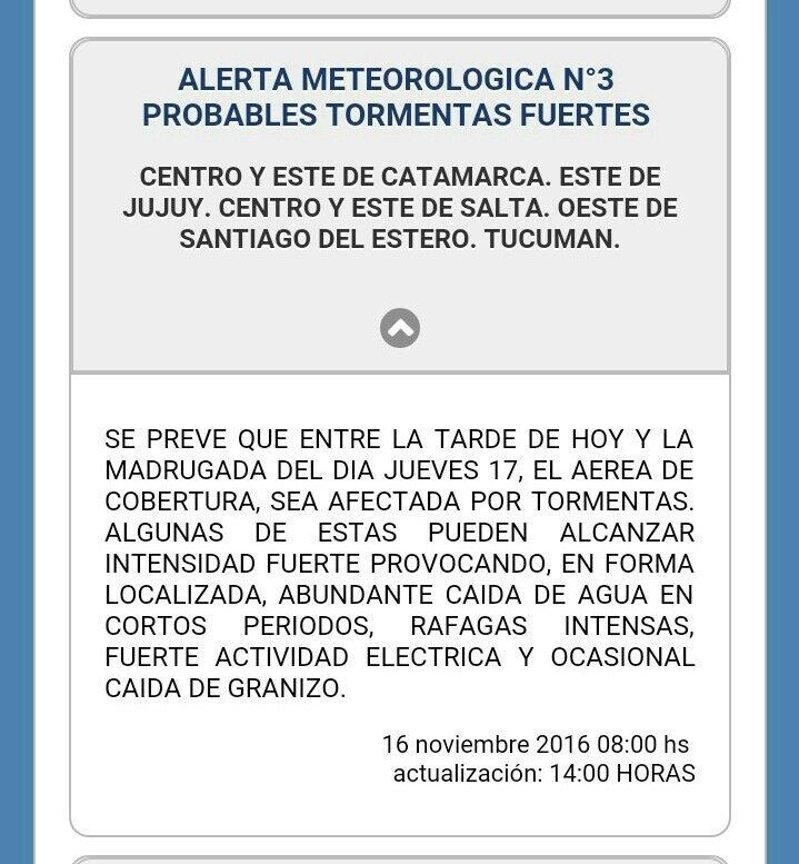 emitida por el Servicio Meteorológico Nacional incluye al Centro y Este