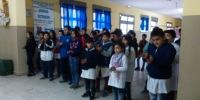 entre sus brazos, fue recibido por el equipo docente de la institución y los