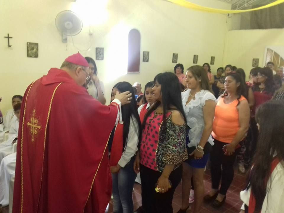 catequistas. Mons. Urbanc les impuso las manos, marcándolos con la unción del