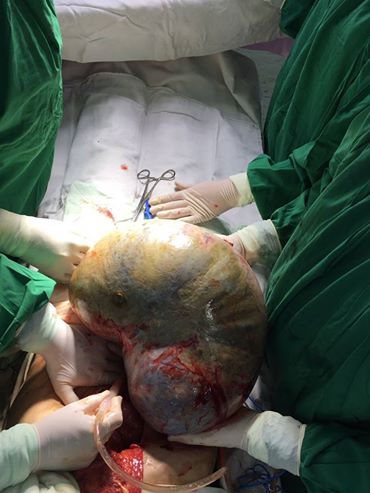 donde a la paciente se le operó un tumor abdomino pelviano gigante de 15 kilos,