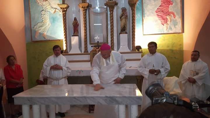 procedió a ungir el altar y las cruces colocadas en las paredes. Por la unción