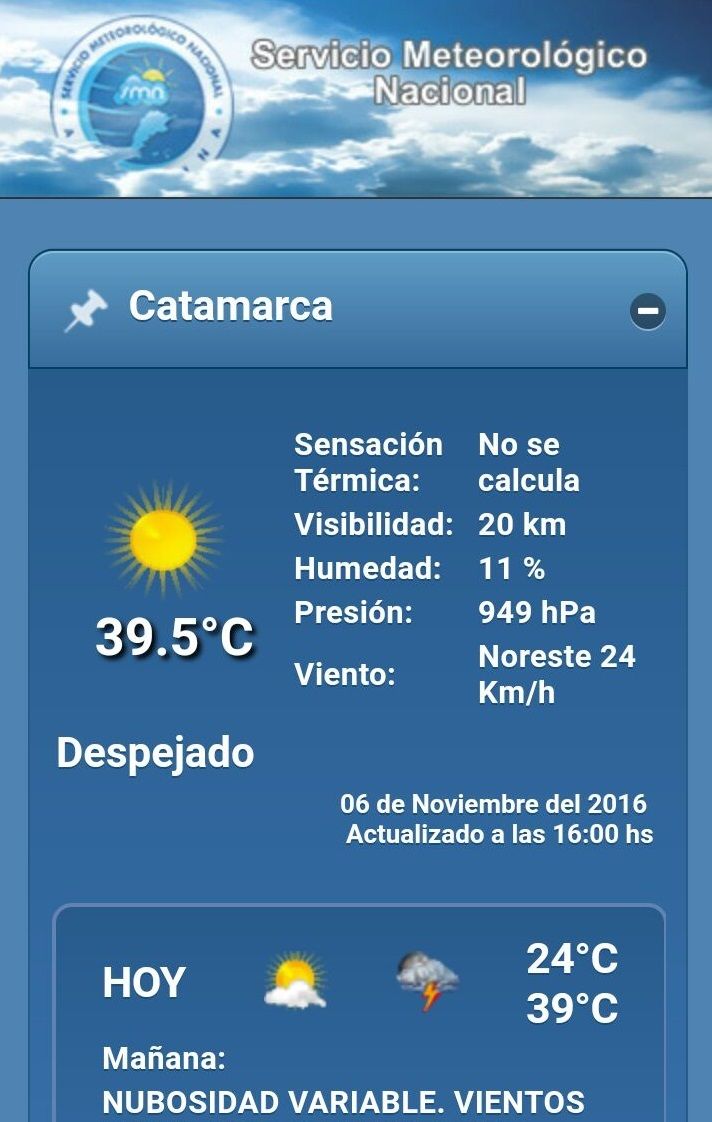 el Valle Central y gran parte de la provincia de Catamarca, registró elevadas