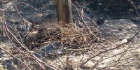fue derribada por la quema de la postación de madera que la sostiene.