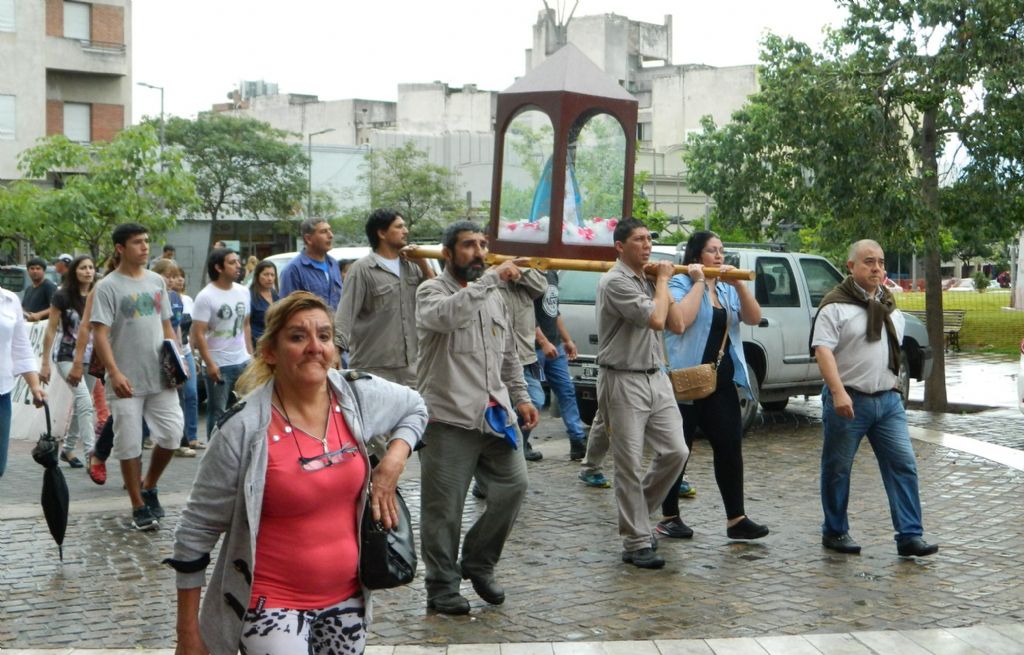 Un grupo de trabajadores partió alrededor de las 9, desde las instalaciones ubicadas en avenida Belgrano portando la Imagen de la Morena Virgen del Valle, que es venerada en la Capilla de San Fernando, ubicada en el antiguo Regimiento.
