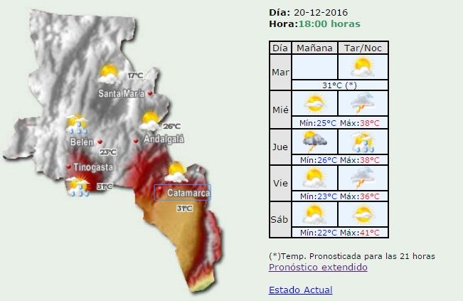 Para el sábabo 24 de Nochebuena, el termómetro podría llegar a los 41°. El resto de los días, el tiempo estará inestable con probabilidad de precipitaciones, y con máximas que oscilarán entre los 36° y los 38°.