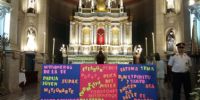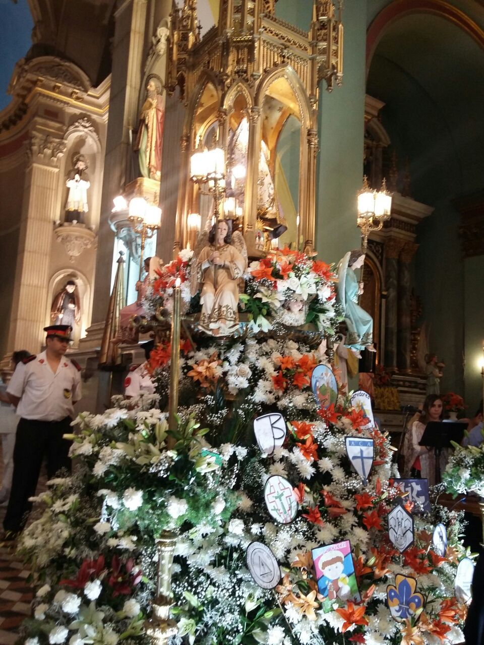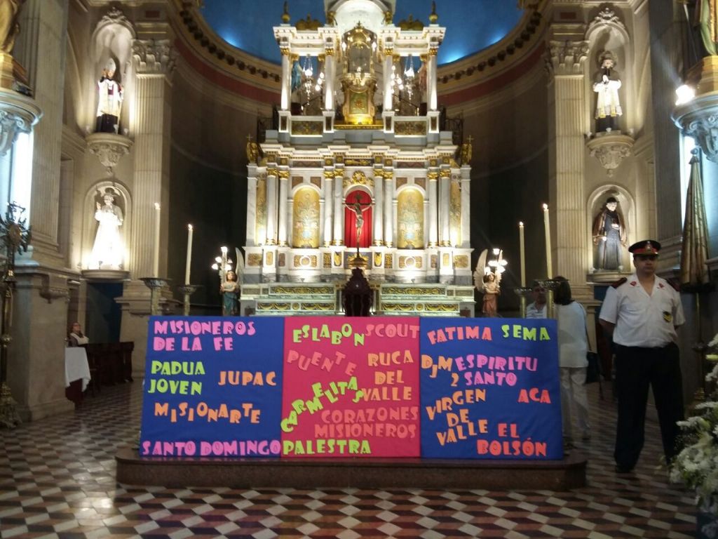 el templo mariano con carteles y pancartas identificatorias, llenando de color