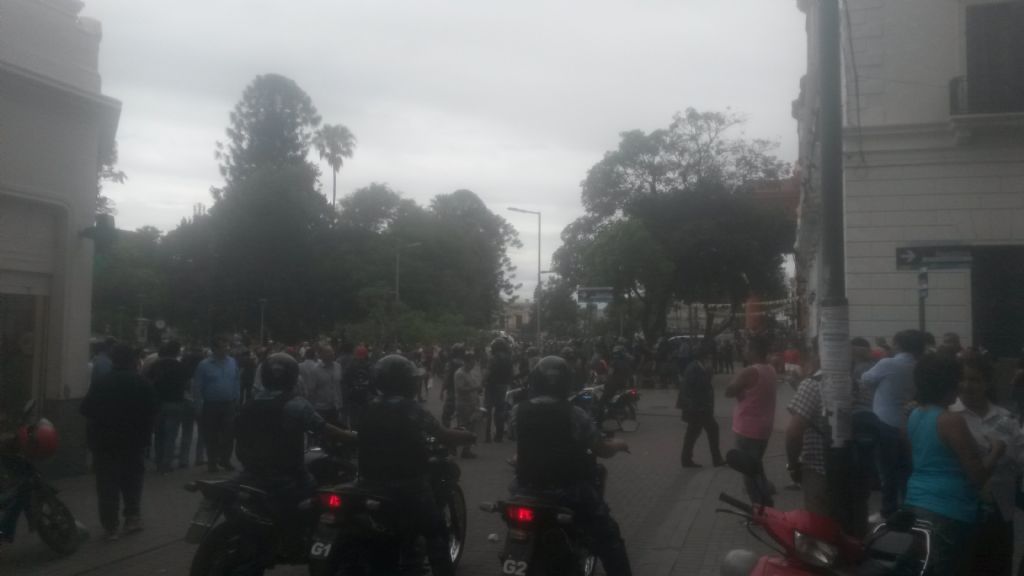 y Esquiú, y otro importante número de efectivos custodiaba la protesta frente a