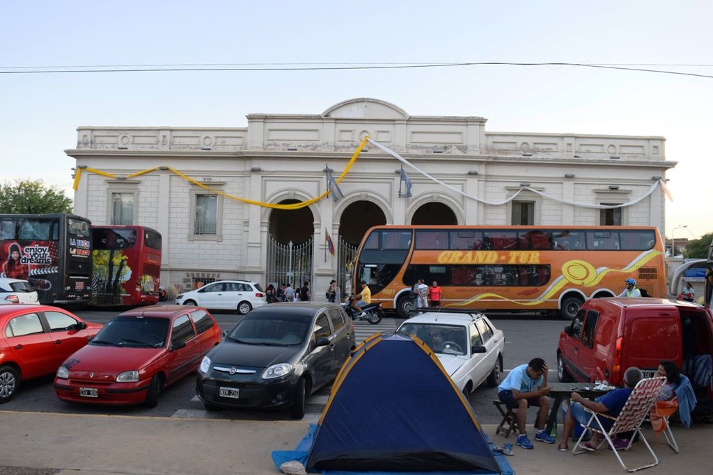 Alrededor de 100 personas, se encuentran acampanando en el sector del estacionamiento. Mientras que otras se encuentran fuera del edificio compartiendo mates.