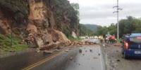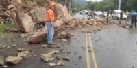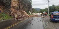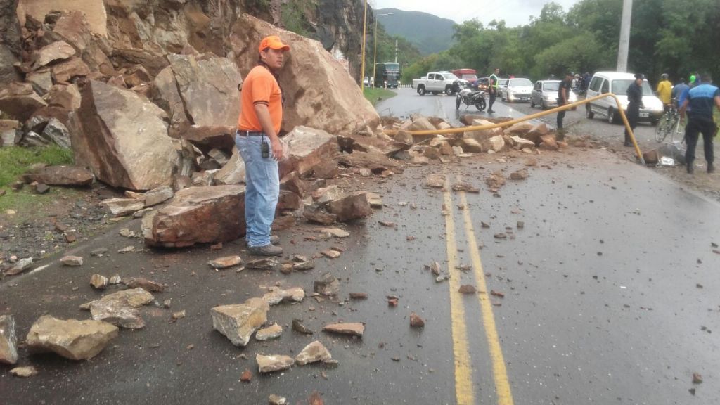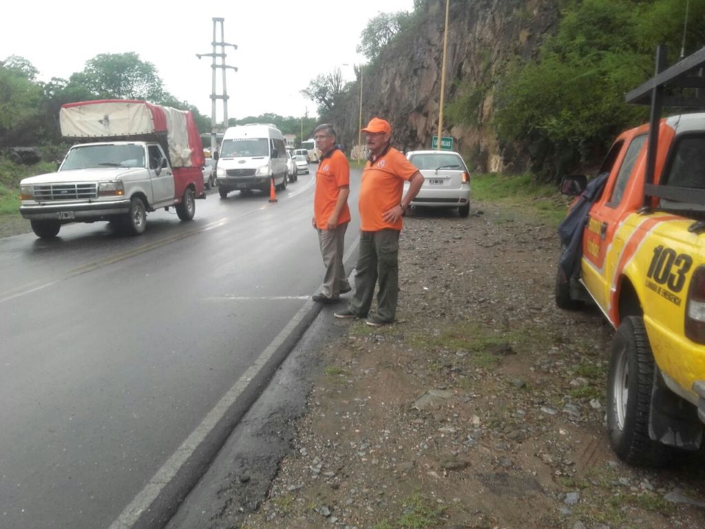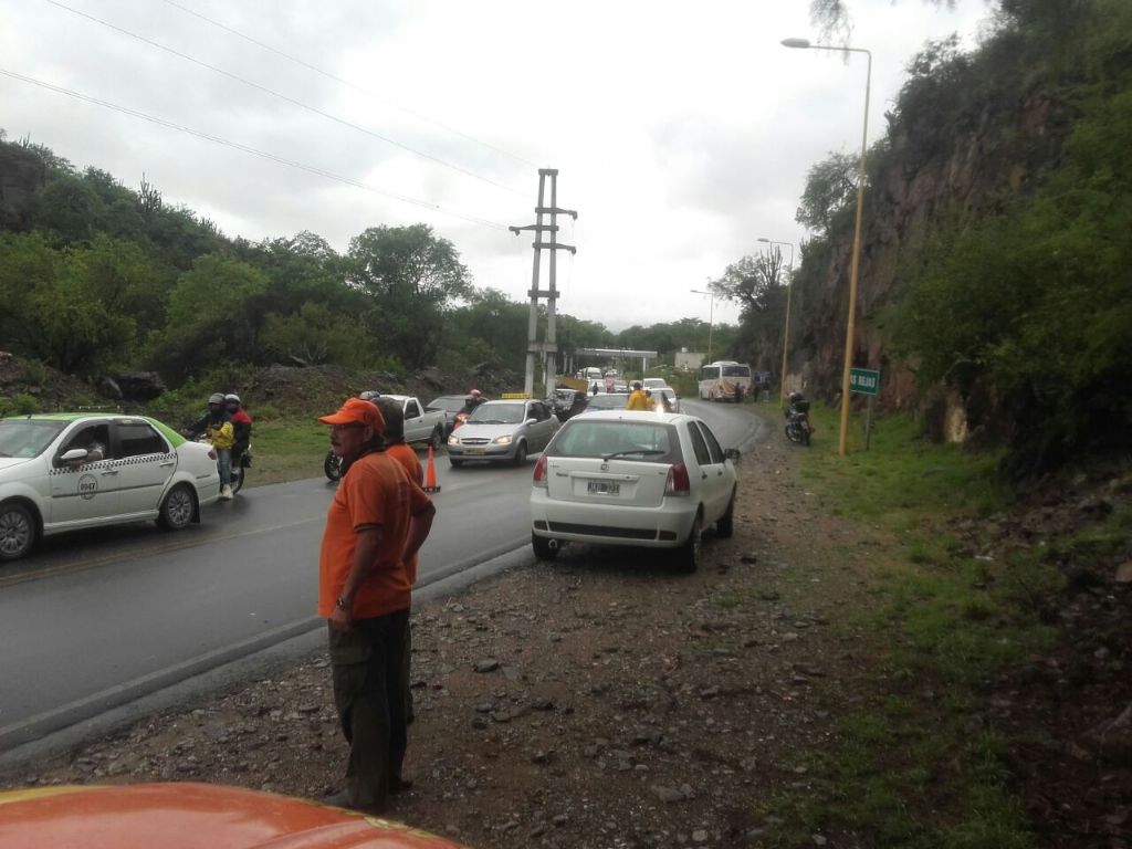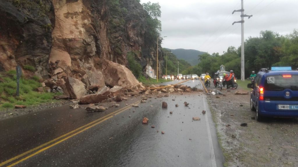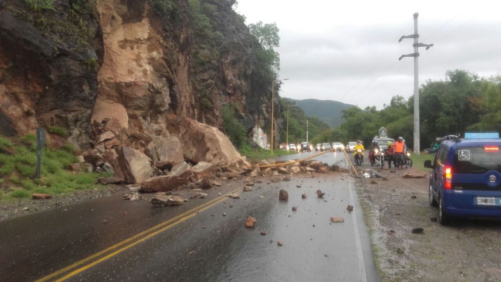 En el lugar trabaja personal de Defensa Civil, de la Policía de la Provincia, y de la Municipalidad de la Capital. El derrumbe se produjo en el kilómetro 2,5 entre el puesto de la policía caminera y el camping municipal.