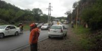 Si bien el tránsito está cortado totalmente, personal policial y de la Municipalidad, trabajan en la ampliación de la calzada para permitir el paso de vehículos.