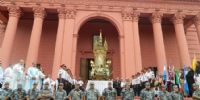 El homenaje a la Patria en el Año del Bicentenario de la Independencia se concretó con la entonación del Himno Nacional, que fue seguido por el Himno a Catamarca y el arriamiento de la Bandera.
