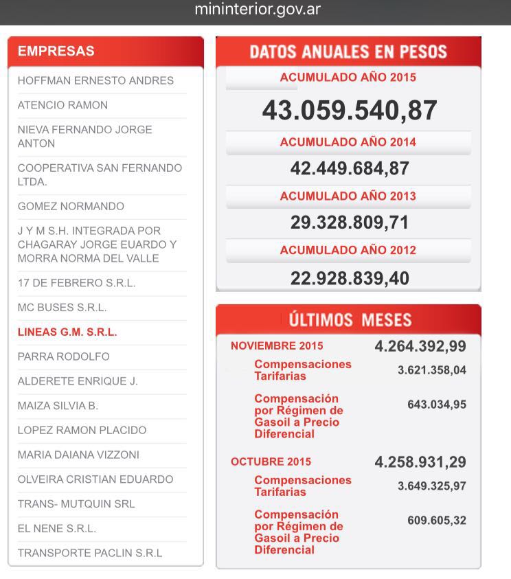 subsidios recibió y recibe, a comparación de las otras transportistas.