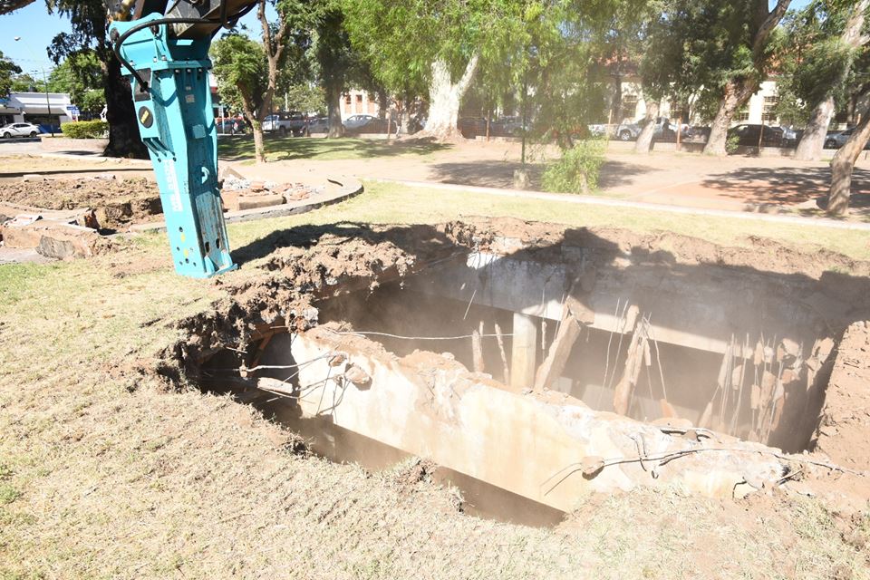 Esta semana se encararon los trabajos de demolición de la cisterna, que tiene cuatro metros de alto, escaleras y otros sectores. Actualmente el espacio sólo puede ser transitado por personal autorizado que trabaja en la obra, para evitar accidentes.