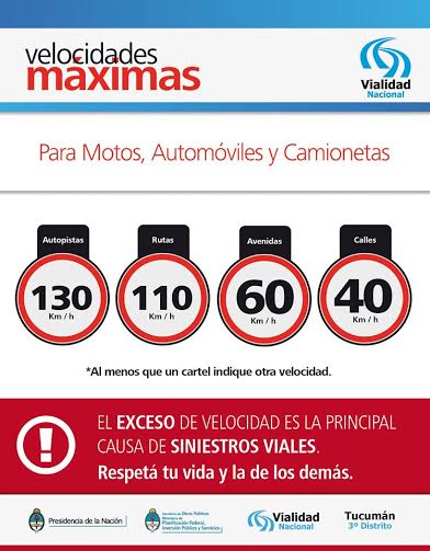Importante: En caso de calzada húmeda, reducir la velocidad al menos en un 40%. Atención a la presencia de animales sueltos en la ruta en varios sectores. Se recomienda a los usuarios respetar las velocidades máximas, especialmente en travesías urbanas, el uso de cinturón de seguridad y casco protector en el caso de motociclistas. Encender luces bajas obligatorias.