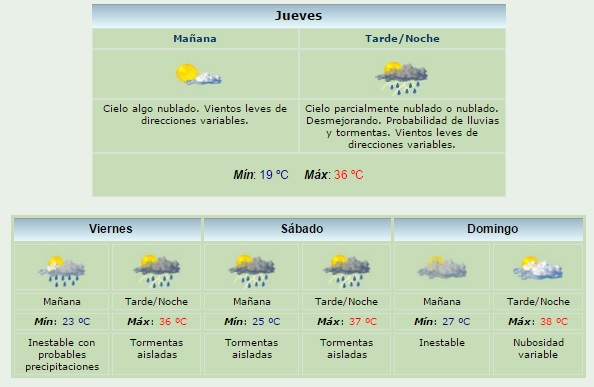 unos 38° de máxima, las amenazas de lluvias se mantendrán durante esta noche,