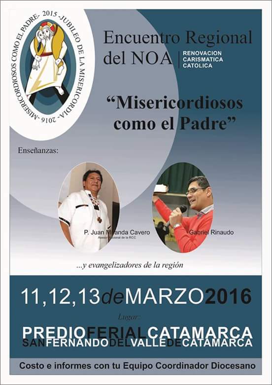 Bajo el lema "Misericordiosos como el Padre”, la convocatoria dará inicio el viernes 11 a las 17.00 y contará con las enseñanzas del Asesor Nacional de Renovación Carismática Católica, P. Juan Miranda Cavero, Gabriel Rinaudo, destacado misionero y predicador; y los evangelizadores de la región NOA.