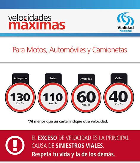 Importante: Atención a la presencia de animales sueltos en la ruta en varios sectores. Se recomienda a los usuarios respetar las velocidades máximas, especialmente en travesías urbanas, el uso de cinturón de seguridad y casco protector en el caso de motociclistas. Encender luces bajas obligatorias.