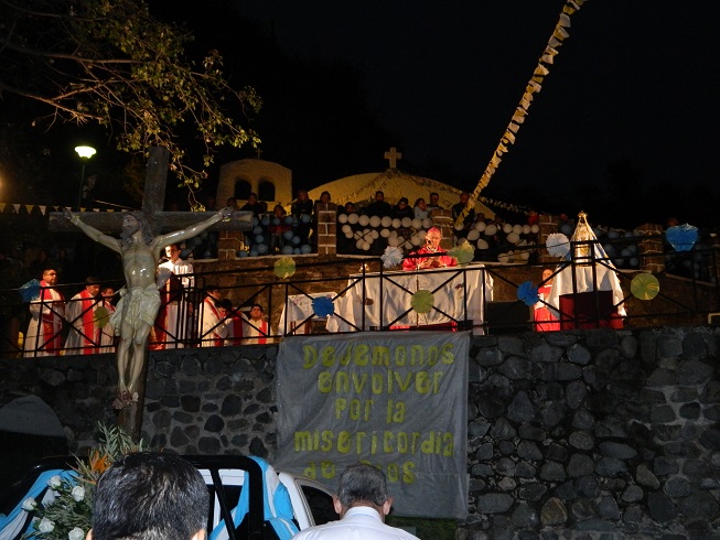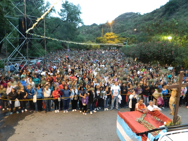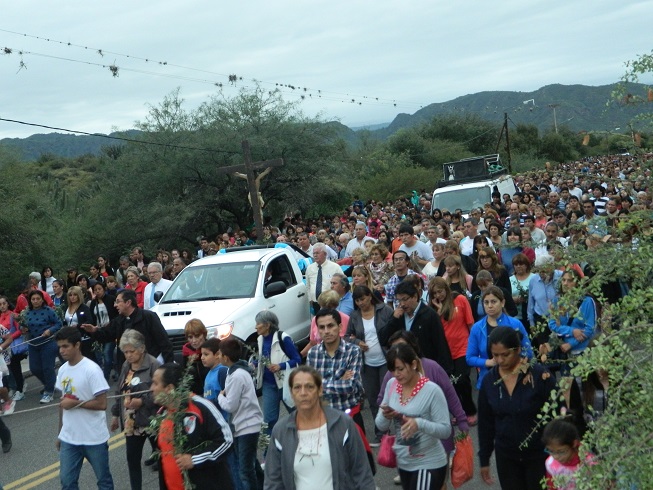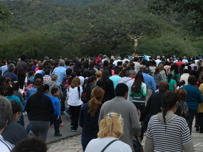 Una gran columna conformada por familias completas caminó por la avenida Virgen del Valle tras la imagen de Jesús crucificado, meditando las estaciones del Vía Crucis cuyas reflexiones versaron sobre la misericordia, temática propuesta para este año por el Papa Francisco.