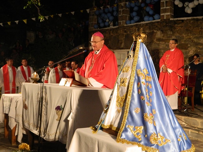 Luego caminaron con los ramos en alto hasta la explanada del lugar del hallazgo de la Sagrada Imagen para participar de la Santa Misa.