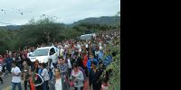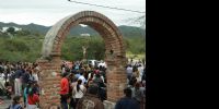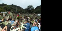 Al llegar al ingreso a la Gruta de Choya, se realizó la bendición de los ramos y la proclamación del Evangelio en el que se relata la entrada triunfal de Jesús a Jerusalén.