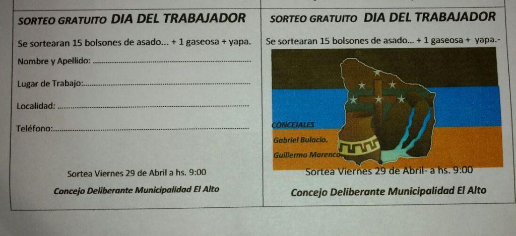 El Concejo Deliberante del departamento El Alto lanzó un bono gratuito para todos los empleados municipales e instituciones del medio, para el sorteo de 15 bolsones el próximo viernes a las 9.