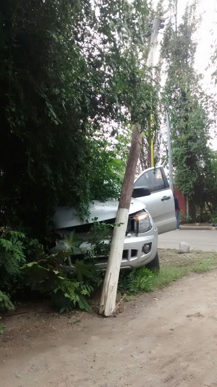 Una camioneta Ford Ranger impactó de frente contra un poste de energía de media tensión y dejó sin luz a una importante cantidad de usuarios.