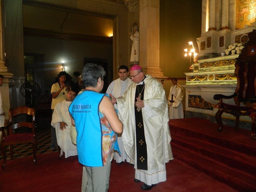 La Santa Misa fue presidida por el Obispo Diocesano, Mons. Luis Urbanc; el Rector del Santuario Mariano, Pbro. José Antonio Díaz; y el Asesor de la Pastoral Diocesana de Comunicación Social, Pbro. Marcelo Amaya.