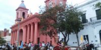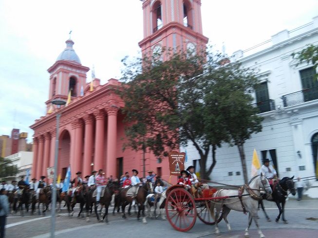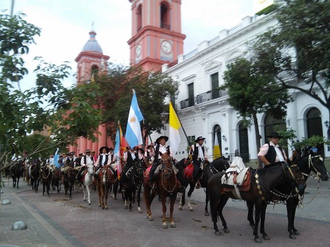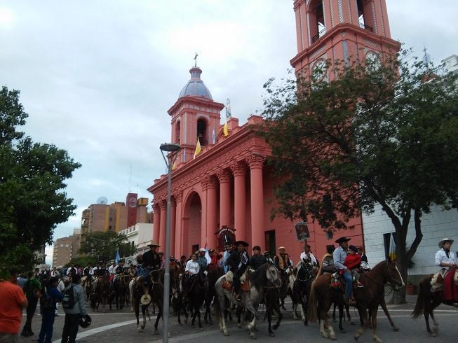 La interminable columna de gauchos a caballo se desplazó por avenida Güemes, calle Sarmiento, pasando frente al Santuario y Catedral Basílica, tomando avenida Belgrano hasta el parque Adán Quiroga, donde se ofició la Santa Misa.