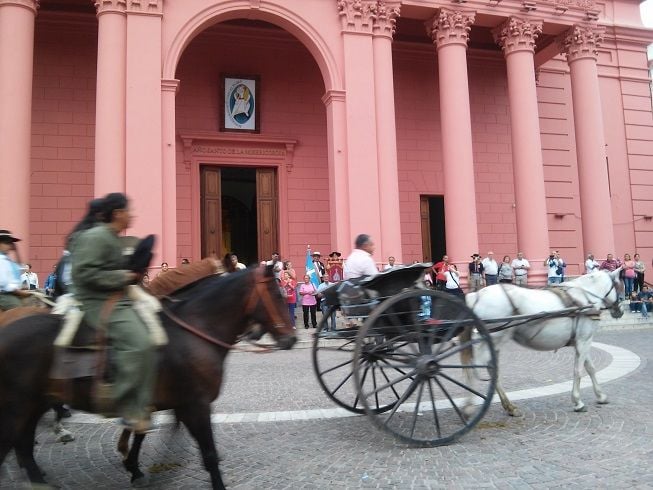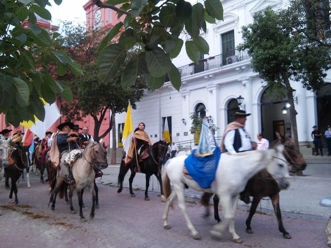 A las 7, los jinetes se concentraron en la plaza 25 de Agosto o Plaza de la Estación, desde donde emprendieron la marcha acompañados de la Imagen réplica de la Virgen del Valle con su poncho de vicuña.