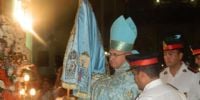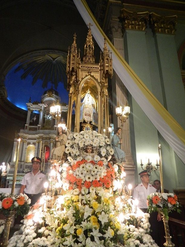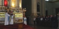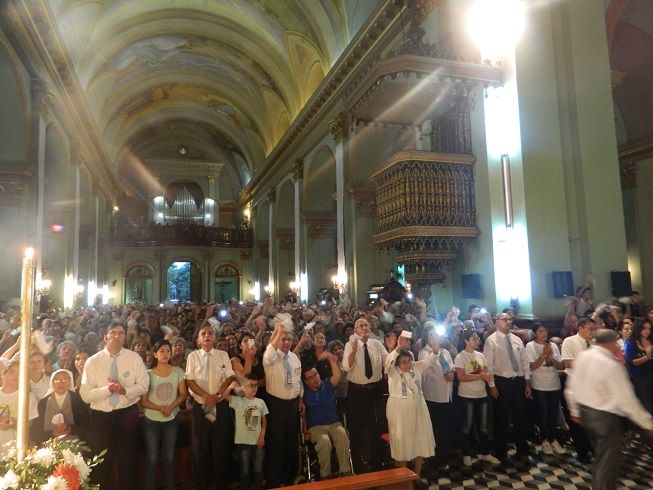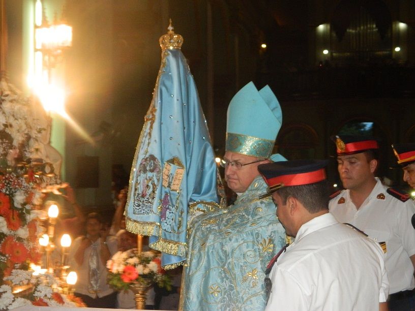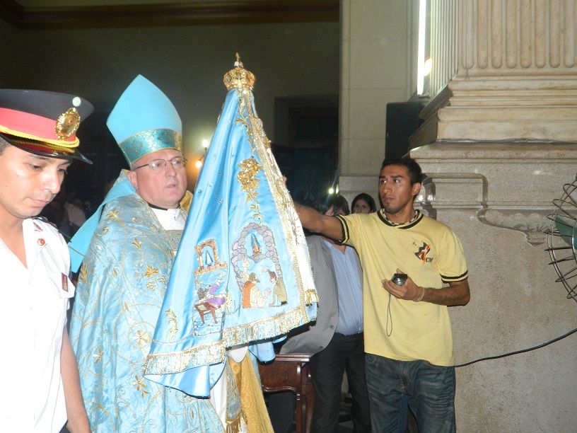 La Imagen cuatro veces centenaria fue llevada en brazos por el Obispo, acompañado por sacerdotes del clero catamarqueño, y en su paso hacia el Presbiterio fue saludada por las autoridades civiles.