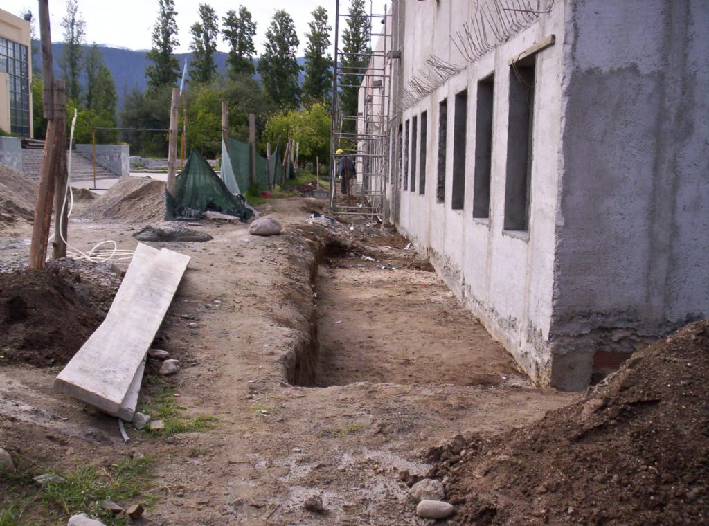 patio de formación, mástil y veredas perimetrales, entre otras.
