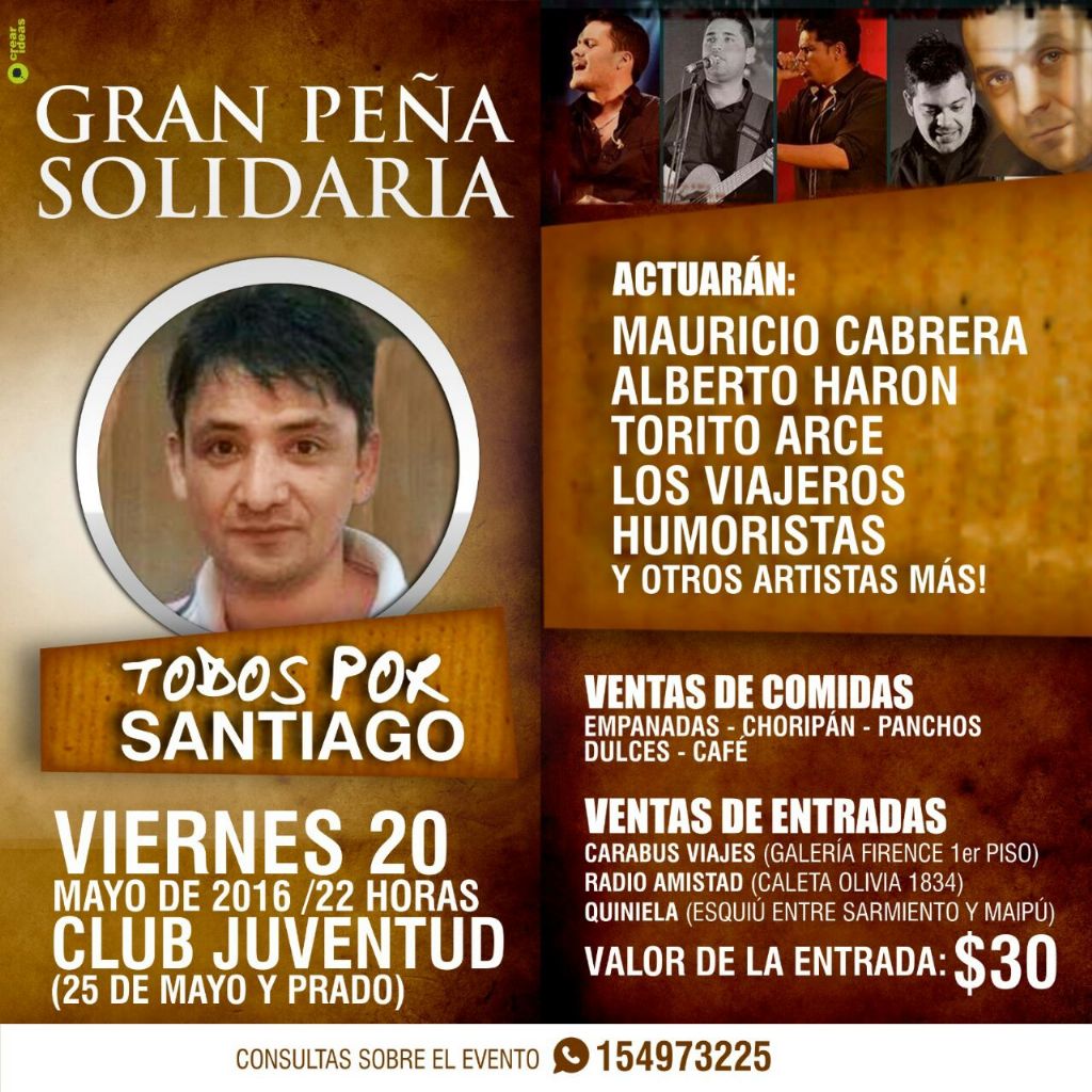 martes, 17 de mayo de 2016 10:01 martes, 17 de mayo de 2016 10:01 El evento denominado "Todos por Santiago” se realizará este viernes 20, a partir de las 22 horas, en el Club Juventud Unida, ubicado en 25 de Mayo y Prado.