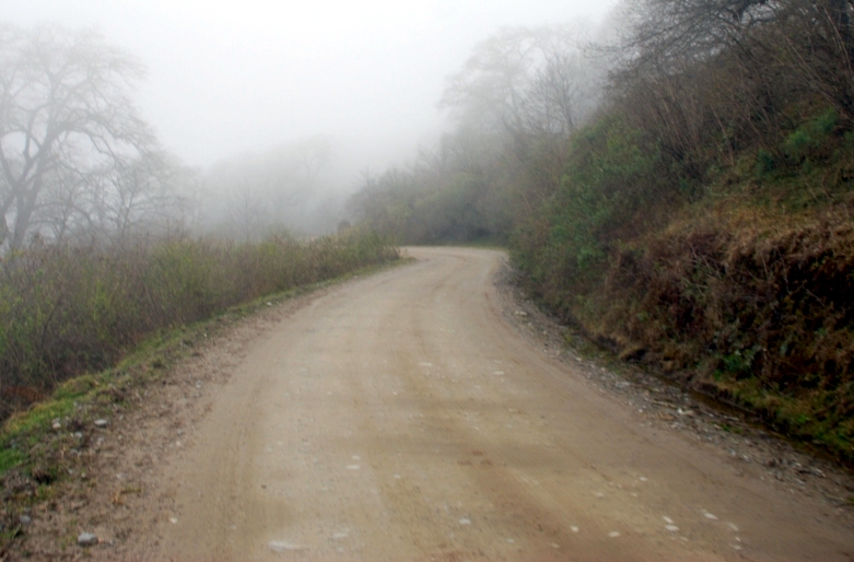 precaución por bancos de niebla y barro en zona de camino.