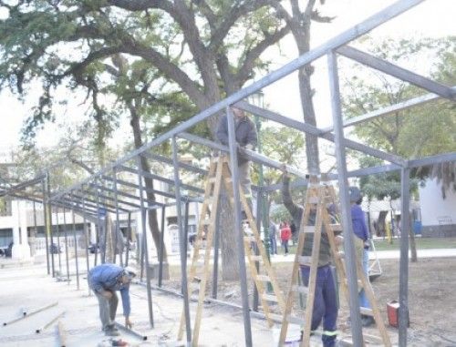 Personal municipal está abocado a la culminación de los armados de los box que serán destinados a los vendedores ambulantes que están actualmente sobre peatonal Rivadavia. Dichos trabajos se realizan en la plaza sobre Av. Güemes e Hipólito Yrigoyen y constan de 50 puestos de 2 x 2 metros aproximadamente que tendrán iluminación, toma corriente y además están techados.
