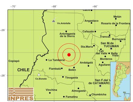 Epicentro: 208 km al O de San Miguel De Tucumán, 213 km al NO de San F. Del Valle De Catamarca, 66 km al N de Belén. -27.094 (lat) -67.268 (long)