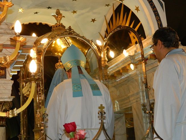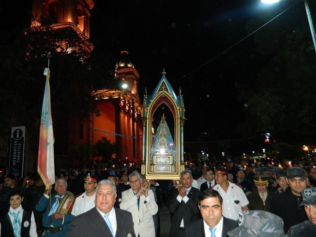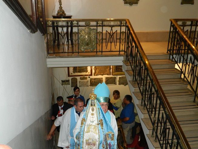 Al finalizar la marcha procesional, las campanas anunciaban regreso de la portentosa Imagen a su Santuario, y fue llevada en brazos del Obispo hasta el Camarín, tal como ocurriera hace cien años atrás.